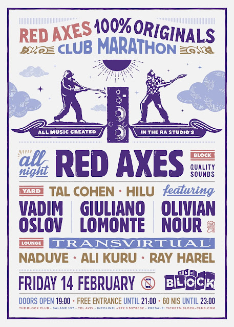 בלוק - אנחנו עדיין זוכרים את הערבים הקסומים וההיפנוטיים שזה היה קורה בסקוואט, לפני שהם הפכו להיות השמות הגדולים שהם היום ובזמן שענקים כמו די.ג'יי הארווי, דיקסון, אם ודני טנגליה ניגנו ברחבה הראשית. בשישי הקרוב, זה קורה שוב והפעם ברחבה הראשית, מ-23:00 ועד אחרון הרוקדים ברחבה: הגרזנים האדומים אול נייט לונג! הדואו התל אביבי הנוצץ דורי סדובניק וניב ארזי א.ק.א רד אקסס יוצא לטור מיוחד לציון 10 שנות פעילות, תחת השם 100% אוריג'ינלס, בו ינגנו לאורך כל הלילה במועדונים נבחרים בליסבון, פריס, תל-אביב, ברצלונה, אמסטרדם ולונדון. צפו למסע עמוק ופסיכדלי שיורכב אך ורק מחומרים מקוריים, מתוך רפרטואר עצום של מעל 700 קטעים מקוריים, רמיקסים, אדיטים והפקות, רבים מהם אנריליסים בהשמעת בכורה עולמית.