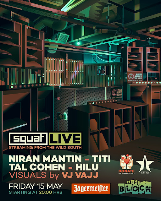 Powered by Jägermeister Friday 15.5.2020 Streaming from the wild south ~ ~ ~ Squat Live ~ ~ ~ Starting at 20:00 - - - - SQUAT - - - - Niran Mantin - The Block, CC, Tel-Aviv Titi - The Block, Tel-Aviv Tal Cohen - The Block, Tel-Aviv Hilu - The Block, Tel-Aviv Visuals - VJ Vajj - - - - - - - - - - - - - - - - - - - - - - - - - Donate and save our nightlife